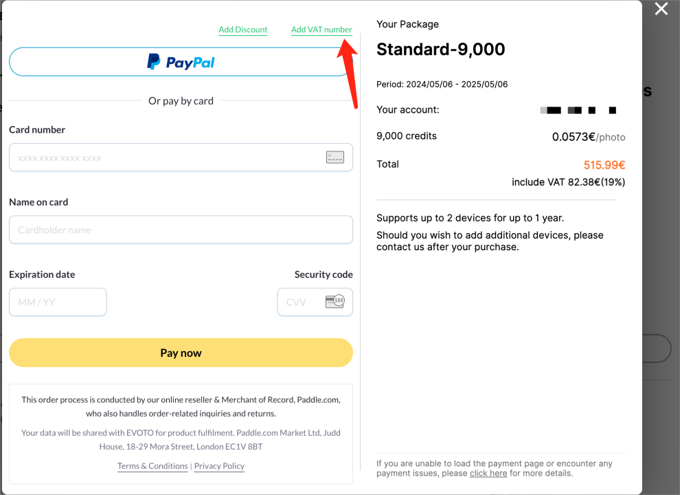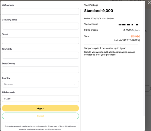 How to add a VAT number when purchasing credits?