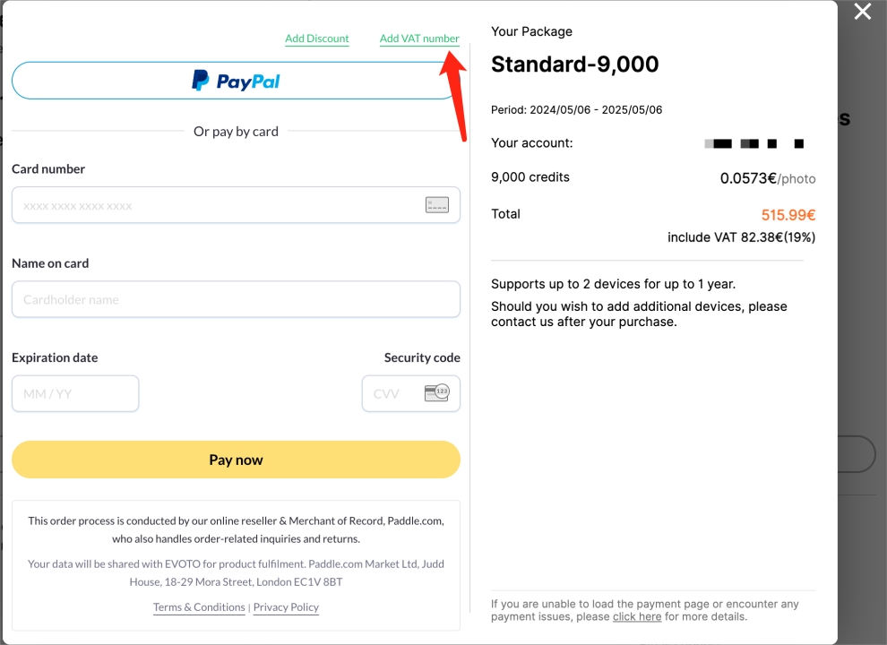 2) Please try to get in touch with your bank to allow international purchases on your card, and release related restrictions to avoid cards being locked. Since the problem is most likely due to your bank declining the payment. Evoto doesn't have information about why the payment method was declined. Here are possible reasons for the bank to reject the payment: